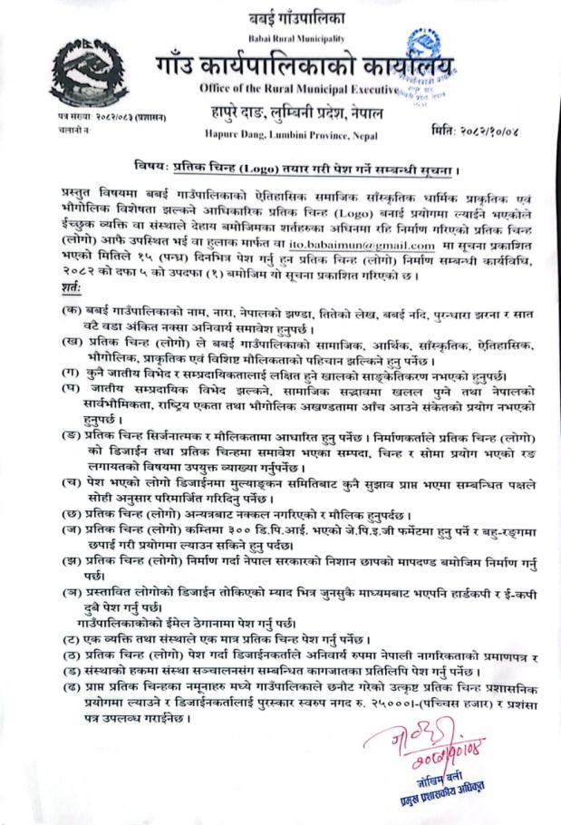 प्रतिक चिन्ह (Logo) तयार गरी पेश गर्ने सम्वन्धी सूचना