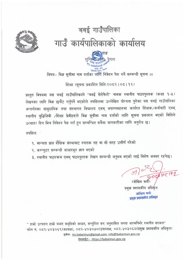 बबई गाउँपालिका विकास योजना २०८२।८३ ( Red Book )