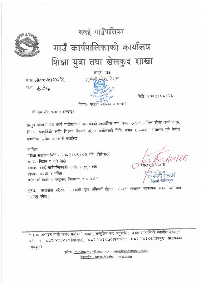 जेन्जी आन्दोलनका क्रममा प्राथमिक तह, विद्यालय सहायक कर्मचारी र माध्यमिक तह द्बित्तीय तहको आवेदन नष्ट भएको हुँदा पुन निवेदन दिने सम्वन्धी सूचना