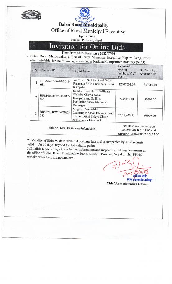 Invitation for Bids ( बोलपत्रहरूको लागि निमन्त्रणा )