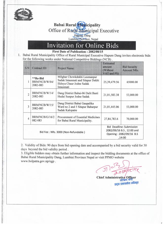 Invitation for Bids ( बोलपत्रहरूको लागि निमन्त्रणा )