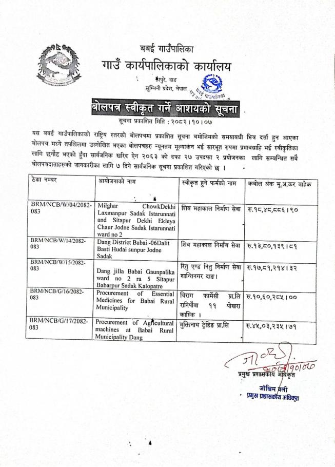 » बोलपत्र स्वीकृत गर्ने आशयको सूचना