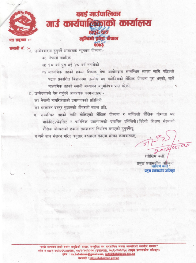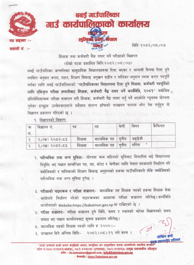 शिक्षक तथा कर्मचारी बैक तयार गर्ने परीक्षाको विज्ञापन