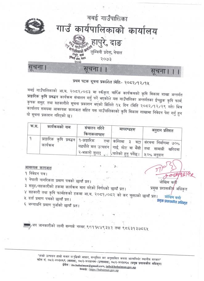 बबई गाउँपालिकाको घटना दर्ता शिविर सञ्चालन सम्वन्धी सूचना